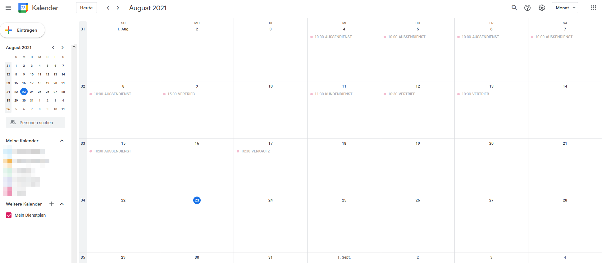 Ihr Dienstplan wird nun im Google Kalender angezeigt: