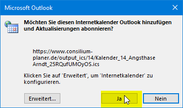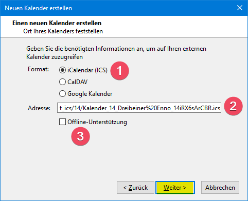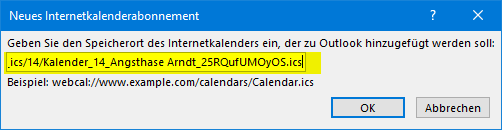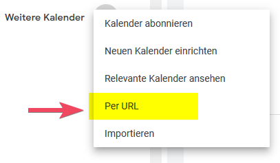 Im nächsten Schritt abonnieren Sie die URL, also die Internetadresse ihres Kalenders: