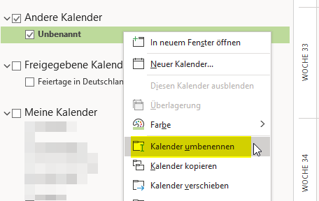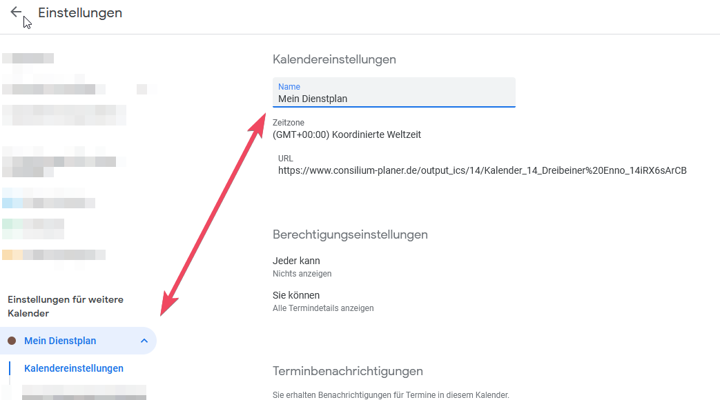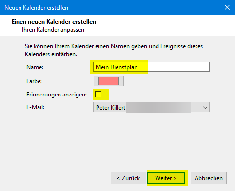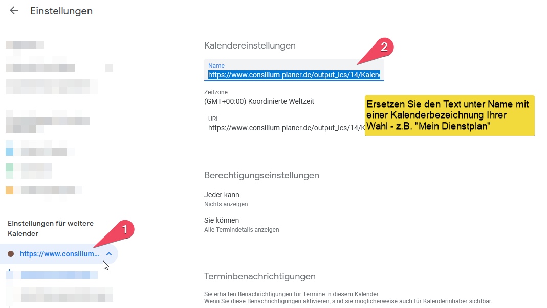 Im nächsten Schritt ändern Sie die Bezeichnung des Kalenders - naheliegend wäre die Bezeichnung "Mein Dienstplan":