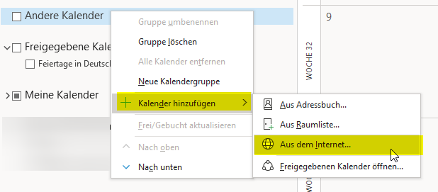 So fügen Sie die ICAL Adresse Ihres Dienstplans in Outlook als Kalender ein: