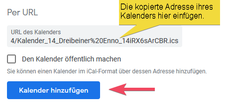 Jetzt fügen Sie die URL ihres Kalenders ein und klicken auf "Kalender hinzufügen":